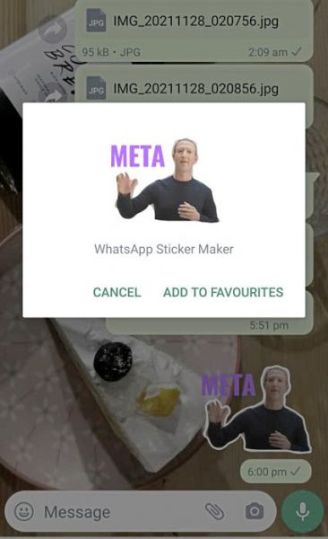 可惜地,编辑贴纸时,WhatsApp所提供的编辑工具没有放大和缩小功能,尤其在去除背景时,无法把背景消除得很干净。不过,贴纸只为了博君一笑,无需太计较这些细节。至于要如何储存这个新制成的贴纸?只要打开手机的WhatsApp,点击有关贴纸,选择“Add to favourites”(加入最爱)即可。