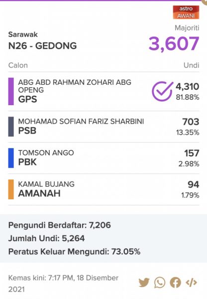 官方成绩 | 阿邦佐哈里赢得日廊州选区!