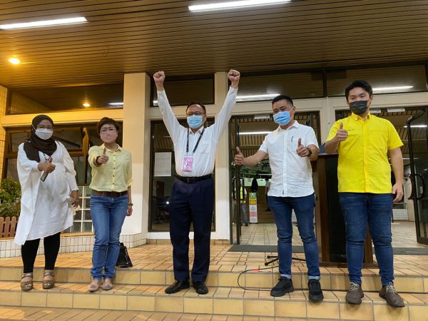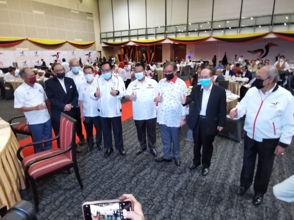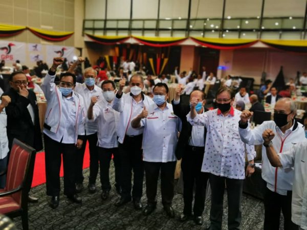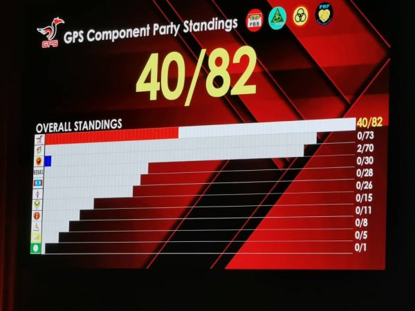 砂盟主要领袖皆聚集在婆罗洲会展中心(BCCK),在得知已经以40席即将继续执政后,众领袖皆高兴举拳庆祝再次胜利!