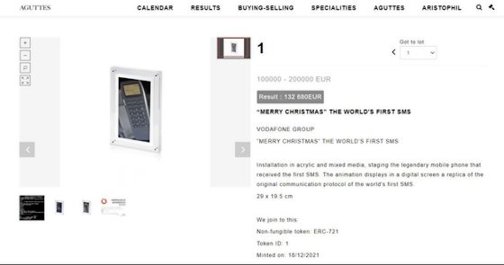 如果将世界上第一条短信(SMS)铸成NFT作品拍卖,可以卖多少钱?英国电讯商沃达丰(Vodafone)去年12月21日在法国巴黎奥古特(Aguttes)拍卖行,拍卖了这幅NFT作品,最终成交价是13万2680欧元(约63万262令吉)。
