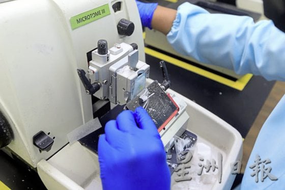 “一个组织样本可以有一个薄片,甚至有超过40个薄片,组织病理学家会用显微镜来查看组织成分,并书写诊断报告给医生。研究一个薄片的时间可以短至几分钟到长达数小时,主要视乎案件的复杂程度,有时还需要多做测试来进一步鉴定组织成分,所以组织病理学家的时间管理要很强,以在时限内提供诊断报告。”