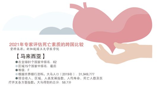 新加坡国立大学医院去年发表“2021年专家评估死亡素质的跨国比较”报告,全球共有81个国家参与研究。经过分析后,大马人的死亡素质排名62,在区域15个国家当中,是排名最后的国家。