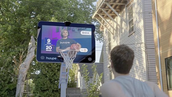 美国一家新创公司Huupe研发了一款智能篮球架,让篮球爱好者可以跟随视频锻炼专业球技。