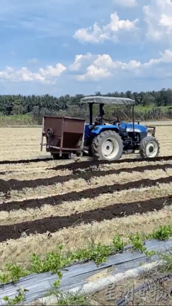 6月下旬来到居銮现代化农业计划农场(Projek Pertanian Moden),大雨倾盆而下。在那儿租地耕种的菜农彭敬咏与拍档王家骅,请了人来修理拖拉机,对方把零件载走了。“我们多数时间是忙着修机器。”彭敬咏说,农夫的主要工作是修理机器、翻土、整地,才能播种。他们购买的是多用途拖拉机,后尾拖着犁,开到田里自动化翻土,一亩地3小时就犁好。