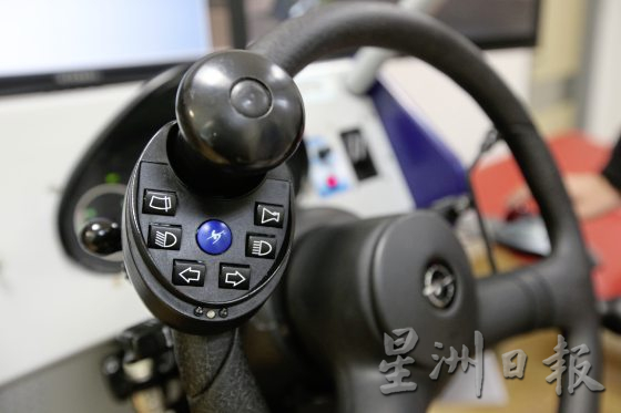 “我们装置了一个模拟驾驶座,犹如玩电动游戏的装备,前面有3个路面屏幕,也备有一般的车辆装备与改装装备。如把原本的脚控油门与刹车都改为手控,还有驾驶盘上的各种讯号灯等等,这些都是残障人士常见的改装配备。”