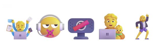 微软设计团队做了几个范本,从左到右就有“multi-tasking”、“你在静音”、“没有镜头日”(应该是指视讯)、“边工作边育婴”和“睡衣装”等。