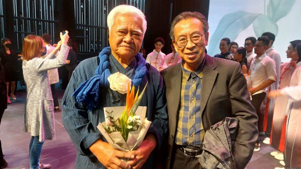 〈花踪之歌〉的词本是首届花踪的宣传文案。1990年,在天后宫的颁奖典礼结束后,星洲日报安排痖弦、於梨华等下来新山演讲,我和陈徽崇商议了可做的“周边产品”:由宽中合唱团唱诗曲,有〈传灯〉,有〈两岸〉,(该有〈流放是一种伤〉或〈星夜行程〉吧?忘了),最后,就有这首初次亮声的〈花踪之歌〉。