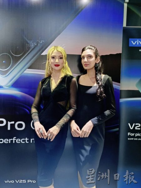 vivo马来西亚首席执行员徐苗(右二)和销售总监林永桐(左二)一起推介最新的vivo V25 Pro。
