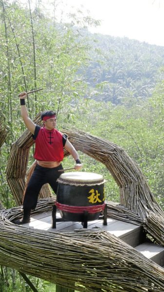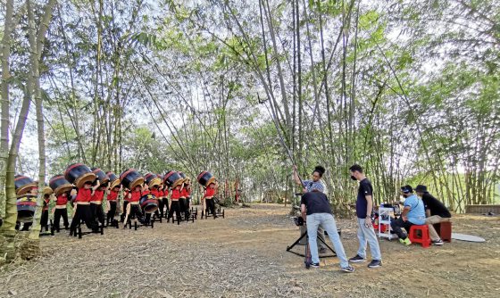 至于另外一个较有难度的场景,林煜凯说,就是站在竹桥上击鼓的镜头。“因为竹竿是空心的,踩在上面很容易会踩空,我们站在上面打鼓要小心翼翼。”