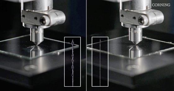 在防刮性能方面,康宁采用努普钻石来测试,看看需要多大的力度才能刮伤玻璃。根据测试结果,当研究人员使用4牛顿的力度时,其他品牌的铝硅玻璃马上出现刮痕。反观,Victus 2需要用8牛顿的力度才会出现刮痕。这意味着Victus 2有更坚固的防刮擦性能。