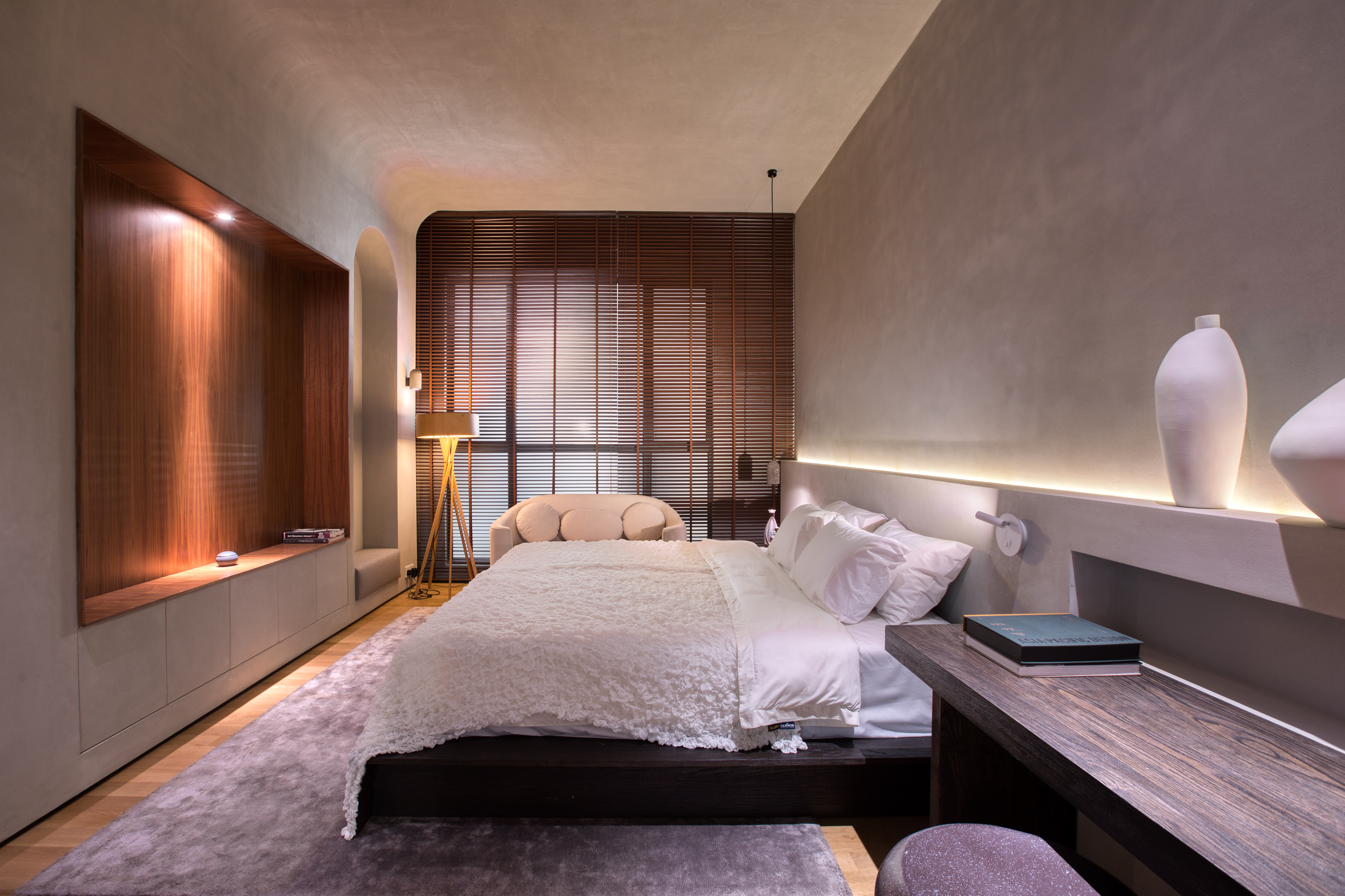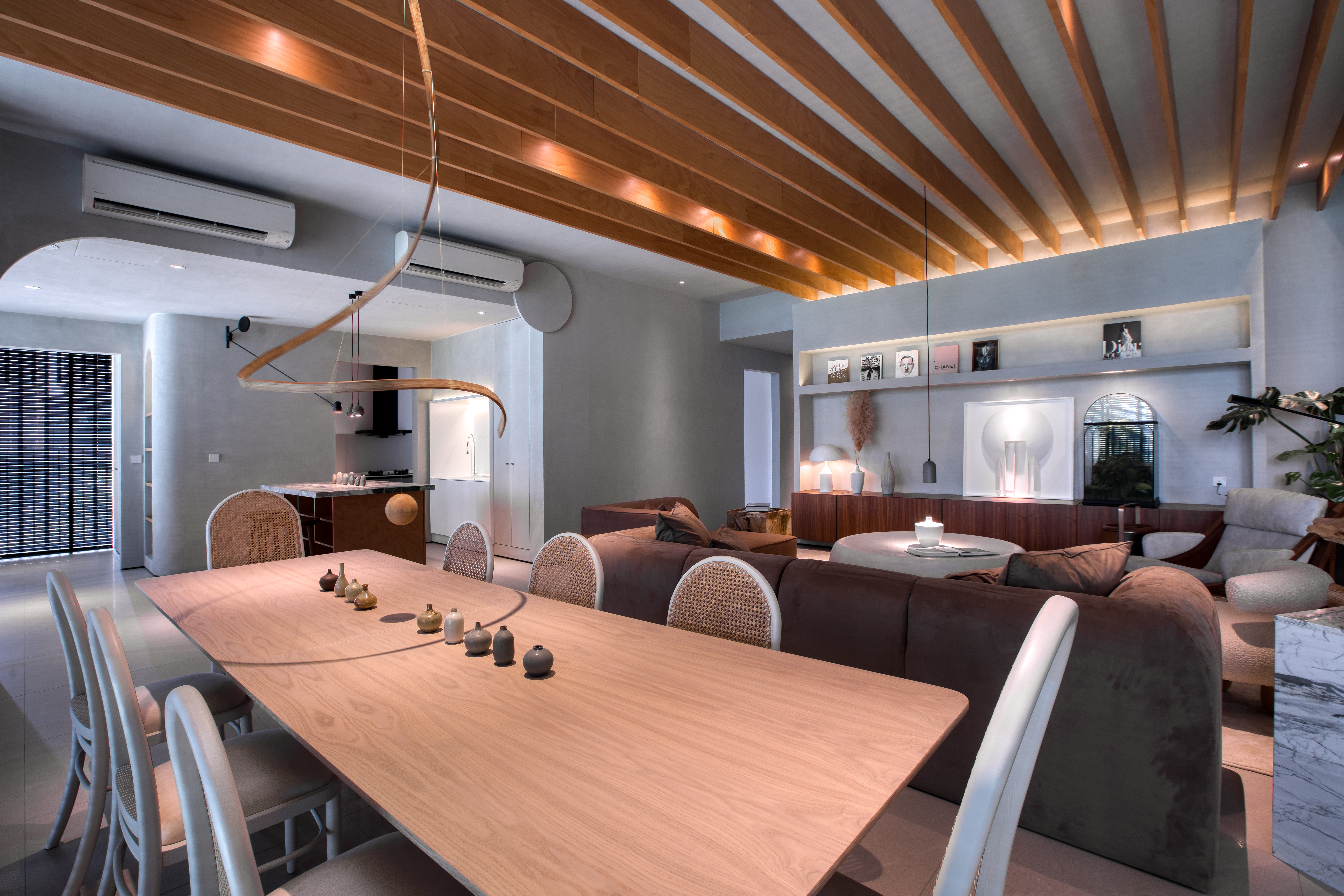Bon Kiara 宽敞的主人房,让你可以将休息与办公空间完美隔开,就算居家办公也有一个舒适且不受干扰的环境,更重要的是,还可以避免将工作压力带到床上,影响睡眠品质。房间里多个角落不乏以实木作为材料的主体或点缀,塑造出让人平静与温暖的色调与氛围。