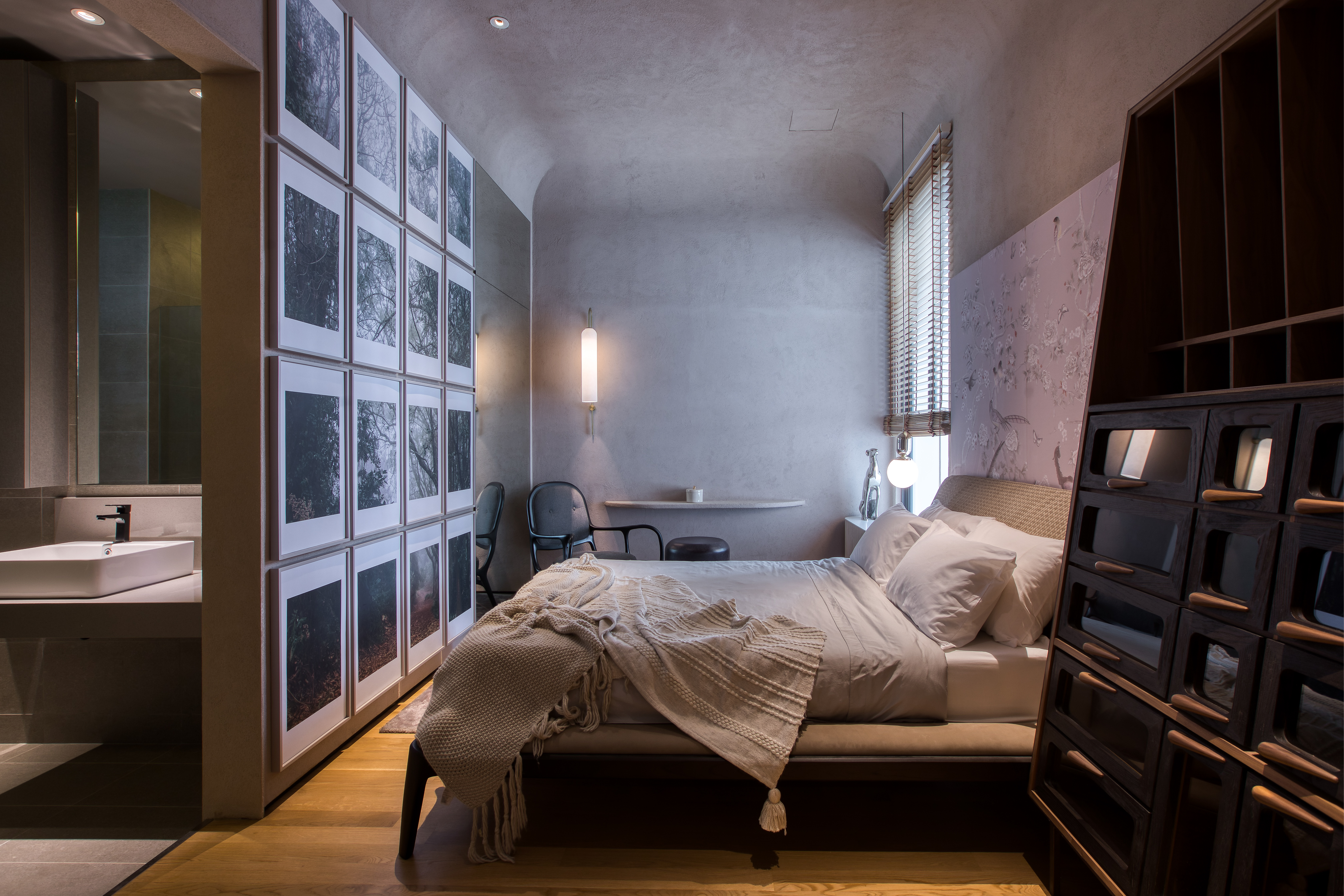 至于女主人,可以在房内打造专属的衣帽间,把自己喜爱的珍藏包包尽情展示出来,针对不同场合而设的各种服饰也可以全都挂出来,方便进行搭配。再加上一个让你可以坐着舒适地打扮的梳妆台,这简直就是女人梦寐以求的空间。