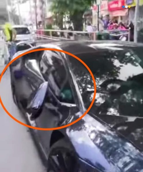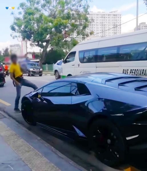 (槟城12日讯)驾兰博基尼(Lamborghini)跑车去吃经济饭,司机违例停车在路边,激怒疑似精神病男子,遭后者扯断跑车右侧镜。