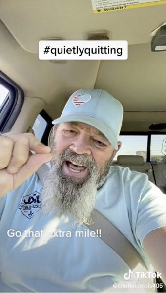 一名中年男子拍摄一支TikTok短视频,抨击安静离职的工作心态。他说:“因为你只要做一点点所以储蓄只有一点点,如果想要买车买房,就不要想着安静离职,做更多吧!”