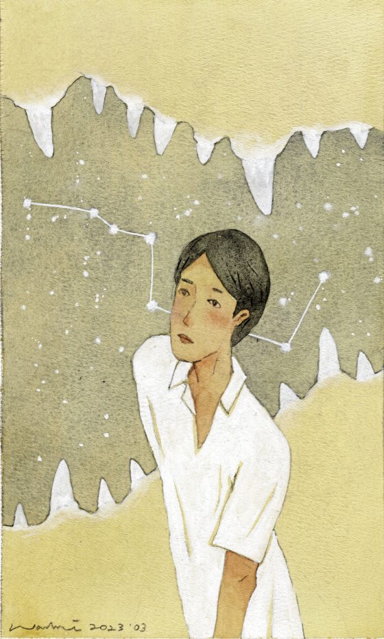原来她不是哑巴,马三牛想,也许是深林土番的小孩。他走过去安抚女孩,从前与哑子兴交流的肢体语言自然流淌,女孩似能明白,收敛神情,小心翼翼递出怀表,似是于她很宝贵的东西。马三牛握在掌心,秒针仍吃力地跳动着,显示已是下午4点钟。马三牛明白了什么,低头盯着女孩,审慎地比划,嘴里发出温柔的音色,示意女孩跟他们一起离开洞穴。