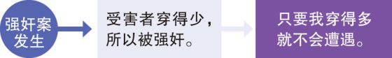 “这样的错误认知,会让人们自然而然将此观念套在受害者身上,这也就解释了为什么不是谴责加害者,而是反过来指责受害者。”