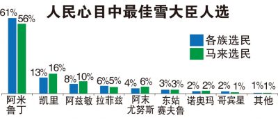 民调指出,若希盟赢得雪兰莪多数议席,高达76和69%的各族及马来受访者认为希盟应该委任阿米鲁丁当大臣,分别仅有22和29%的人反对,另各2%不知道。