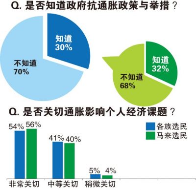 本次雪州选,民调中54%的各族受访者都表示非常关切通胀问题、41%表示中等关切和5%表示稍微关切。