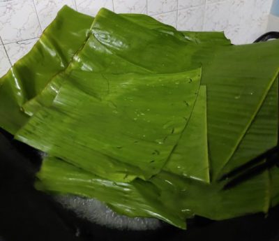 新村最不缺的叶子便是香蕉叶,随手可得,甚至说是每日使用率相当高的叶类都毫不夸张。