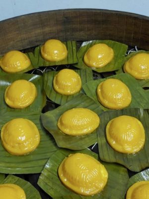 母亲是制作糕粿的能手,退休前几乎每日都与香蕉叶打交道,所以,也积累一点使用香蕉叶的“小撇步”。像制作年糕用的香蕉叶得经过沸水煮一煮,质地就会变软,便于折成所需的形状。用不完的香蕉叶用纸包好放入冰箱蔬菜箱,就可耐放超过一周。