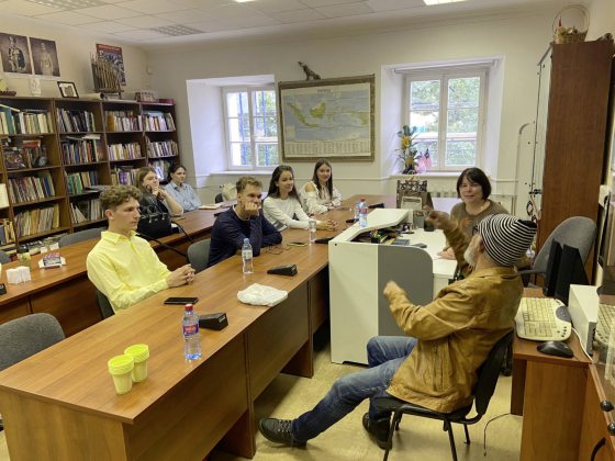 2022年9月,库库什金纳(后右)与学生聆听马来西亚导演尤威(U-Wei Haji Saari)分享经验。(受访者提供照片)