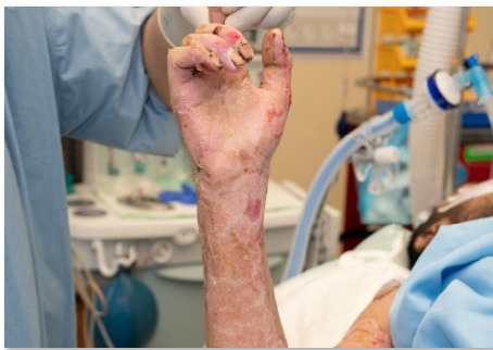 医生根据灼伤的深浅、部位与面积大小,会给予不同的治疗方法。如果患者遭到深二度灼伤或三度灼伤,医生需要实施皮肤移植,由正常皮肤处取分层或全层皮肤移植至伤口处作覆盖,通常是选择衣服可以遮盖的部位作为供皮区,比如大腿或头皮。