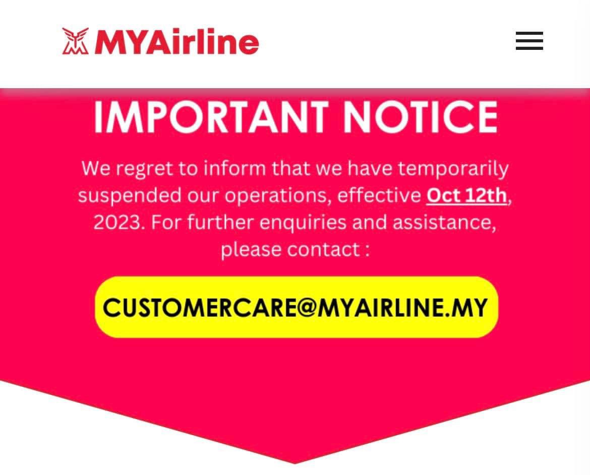 该航空公司在清晨6时在社交媒体发布上述消息,并附上电邮,吁请受影响乘客联系客服,以做后续安排。
