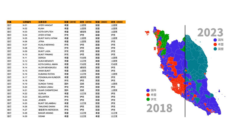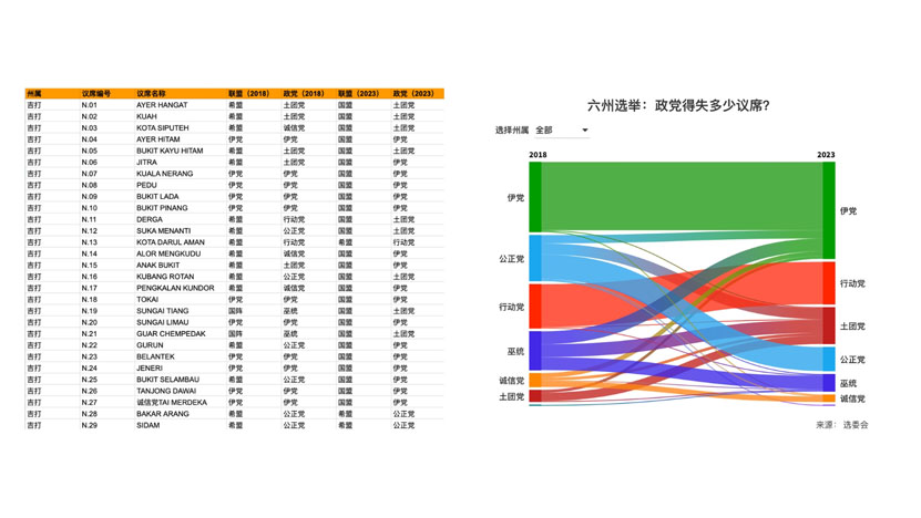大选成绩出炉,透过视觉化呈现,可以看出两届大选的选票流向,以及议席分布。(受访者提供)