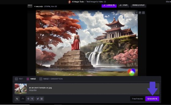 | 4. 点击“Generate”,稍等一两分钟,就会得到一个4秒的短视频。