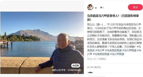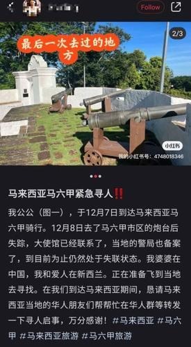 中国游客来马旅行出车祸后失联 妻子孙子社媒发寻人消息