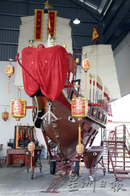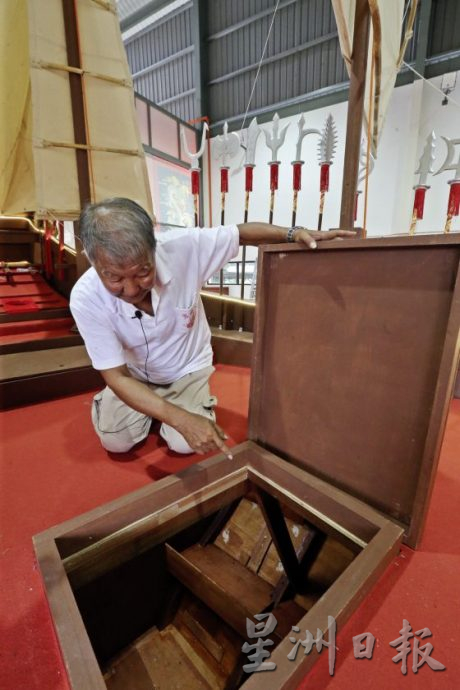 问起送王舡仪式的经过,该殿秘书长苏汶财从仪式最初的“迎王”过程,简略说明:“王爷会告诉我们王舡经过马六甲海峡的日期,2021年的时候,勇全殿迎来孟府王爷代天巡狩。”他解释,当殿内迎来孟府王爷后,便由他交代送王舡的日期,再将整年的仪式定下。