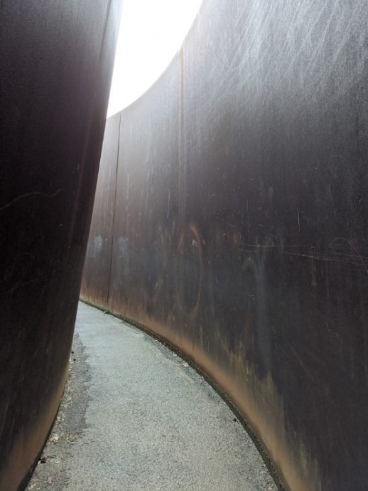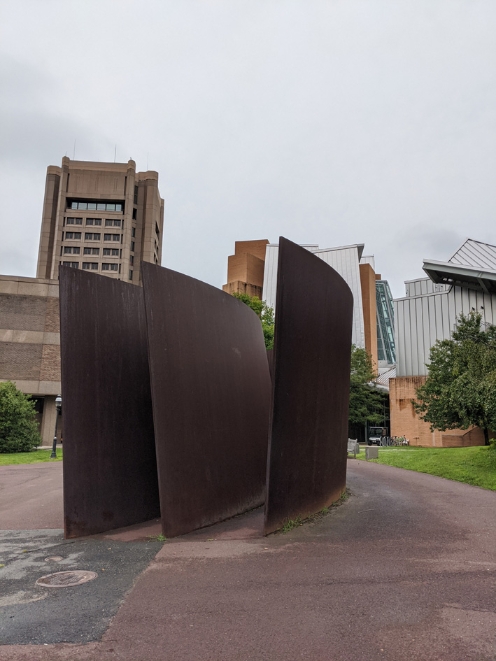 我所在的普林斯顿大学天体物理系,系外有个美国极简雕塑大师里查·塞拉(Richard Serra)的作品。作品名叫《刺猬与狐狸》(The Hedgehog and The Fox),我们系里的同事都笑称那是“3块大钢板”。实际上,那作品确实就是竖着3块4米乘25米的大钢板(人家“极简”大师也不是浪得虚名的)。有趣的是,3块钢板外面是宽敞的,但是只要到了里面,视野立马就变得非常局限。