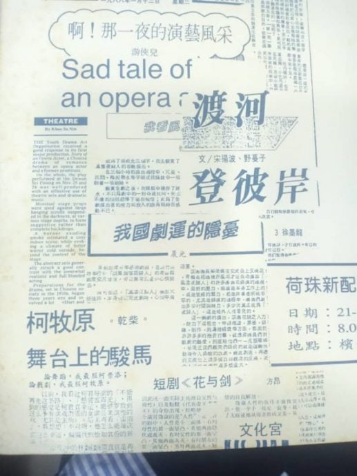 “我在新加坡参与很多文艺活动,学习如何有系统地策划话剧活动。回到槟城,我那时25岁,第一次当导演,排演了一部话剧,是新加坡剧作家林晨的作品《不能再走这条路》。后来,我连续拍了另两部作品,同样是采用新加坡剧作家韩劳达的作品《悬赏五百元》和《五比零》。