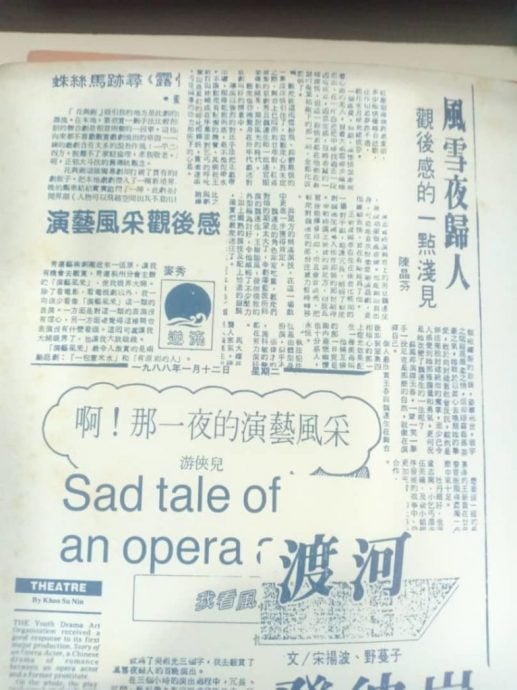 提到剧运,北马第一届槟威中学生戏剧比赛扮演了很重要的角色。该比赛将中文剧场带进校园,后来演变成北马中学戏剧比赛,成为一项全国赛事。无疑也间接为本地戏剧界培养年轻人才。“这个比赛培养了很多戏剧工作者和爱好者。在90年代,槟城中文戏剧可说在高度发展。毕业生到海外留学,汲取当地的表演艺术知识,逐渐将手法变得更专业和娴熟;新生代走出校外也组织剧团,促使中文剧场的发展变得更成熟。在那个时候,我也渐渐退出戏剧演出。”