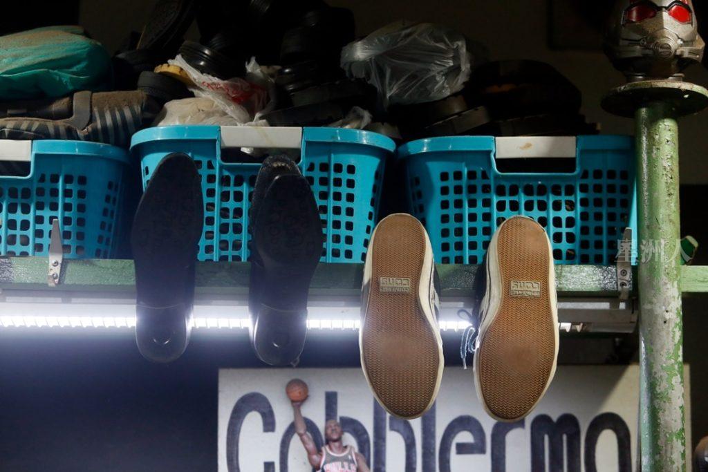 往下看,余志祥脚下的一双拖鞋就穿了5年,每天陪他上班回家,走过风风雨雨。他眯眼笑说:“这双鞋曾经鞋底开口,粘好后又可以继续穿了。因为做惯了鞋子,知道什么鞋子最耐,选质量好一点的鞋子,就不必买那么多鞋咯。”