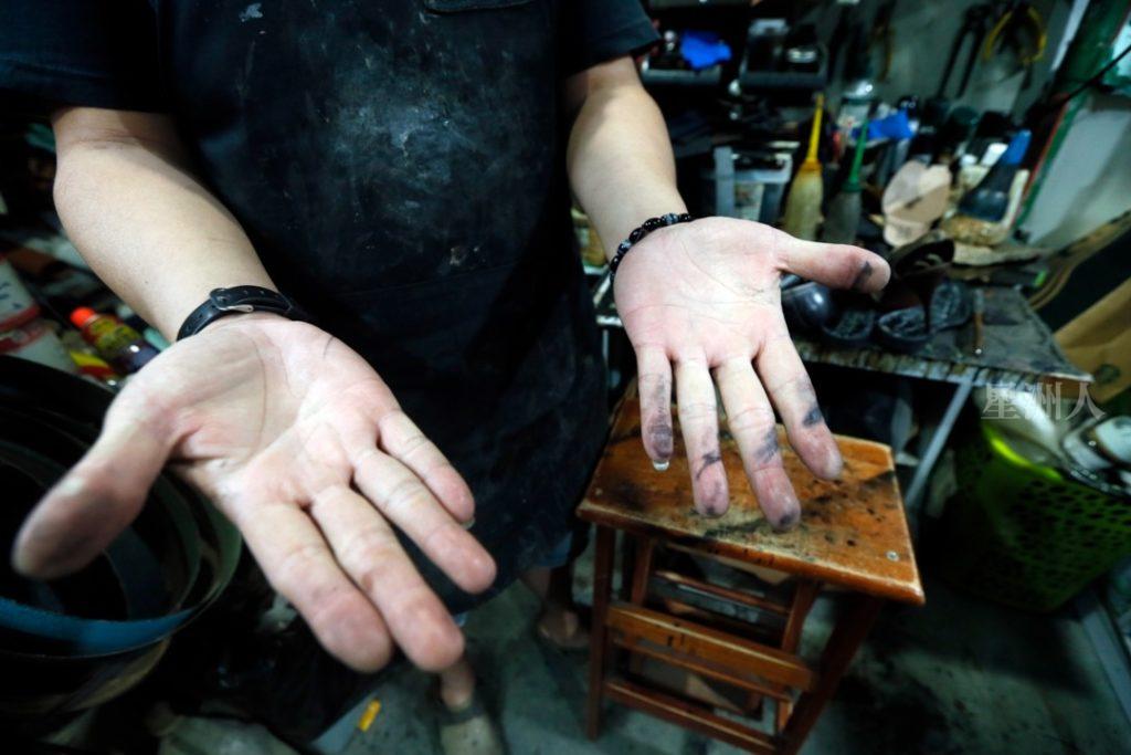 他坦言,修鞋是一份既肮脏又辛苦的工作,需要长时间工作,手停口停,仅能养活糊口,而且修鞋手艺并非三两天就学会的事,需要长时间学习和积累,少有本地人愿意从事修鞋工作,让修鞋行业面对没人接手的巨大挑战。他也忧心说道,这次漫长的行管令大大影响了生意额,面对租金压力,店铺有可能只撑到10月。