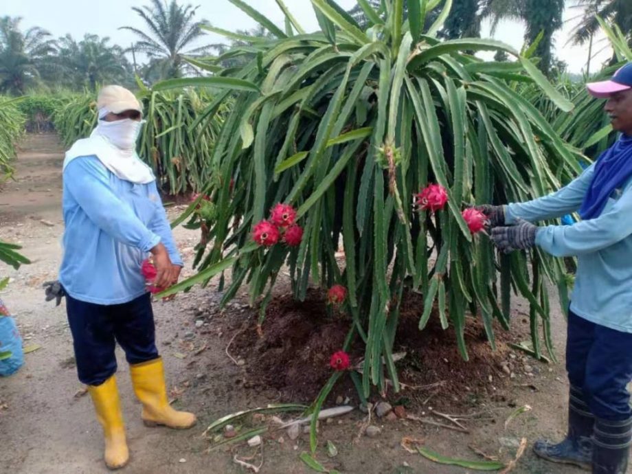 他表示,年中不只是入口水果盛产的季节,本地水果也一样,火龙果、榴梿、山竹,这些本地水果的收成期都是在年中。而火龙果树是不同时候栽种,确保常年都有收成,年中是产量比较多的季节。