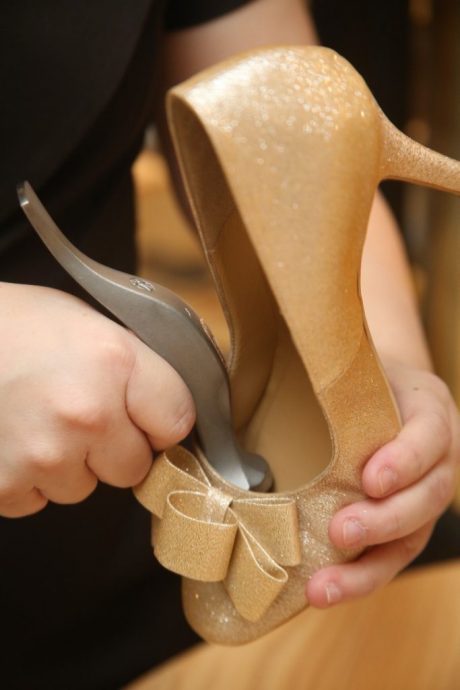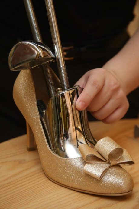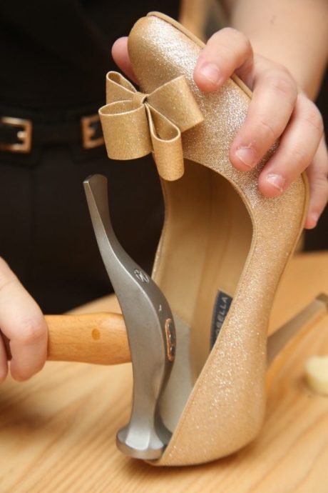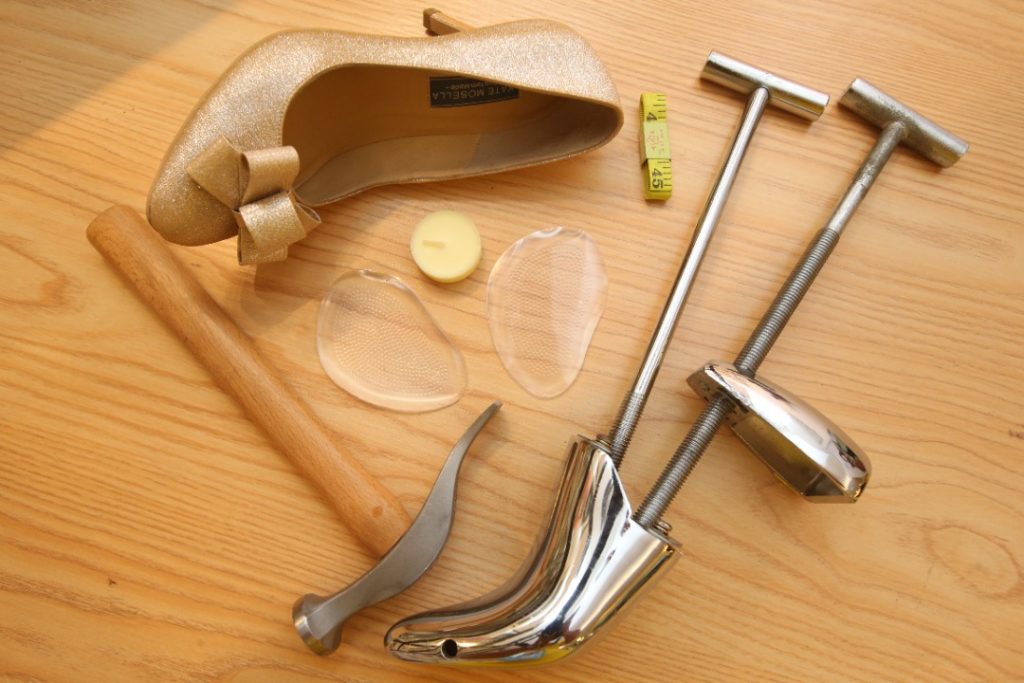 如果鞋子有点窄,也可以试着用铁锤往鞋头及鞋围内里推拉,可以撑大领口部位,穿着就不会太挤及磨脚,但这仅限于小幅度的撑大,若要大幅度撑大,就必须使用高跟鞋专用鞋撑了。