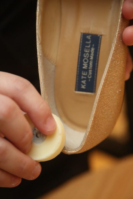 要穿新鞋时,试着用蜡块来润滑一下鞋子后跟及鞋边(鞋身边缘处),轻轻的来回抹上,可以减缓鞋子穿着时带来的摩擦不适感!