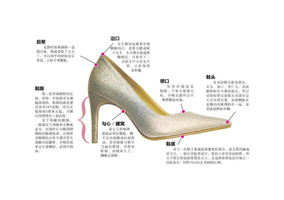 那么,我们又要如何挑选一双适合自己的高跟鞋呢?