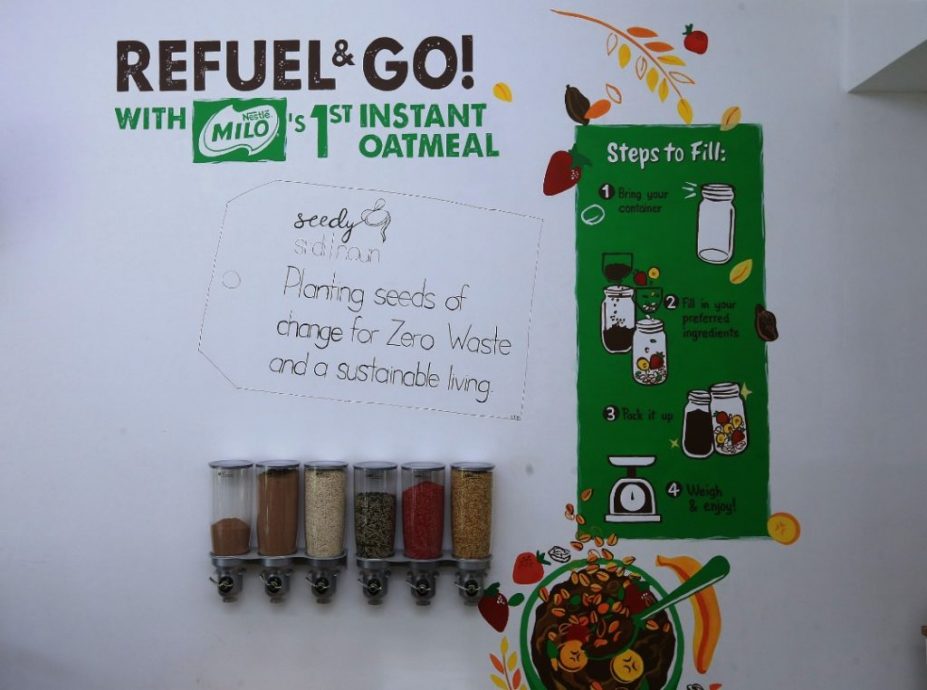 勇于创新和大胆开拓的她,甚至主动接触Nestle这个全球最大食品制造商,经过10个月的努力,终于打动前者与她合作,破天荒推出裸包装的Milo口味即食麦片,成为Nestle在马来西亚第一个零垃圾产品。最近Nestle在她的店里安装了一排谷粮“扭扭机”,顾客可以带着容器来这里购买自己搭配的早餐谷粮组合。
