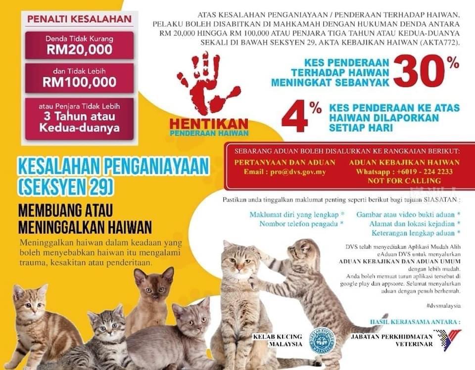 无论如何,该部这些年来对保护猫咪福利的工作不曾间断,包括定时推出及举办慈善活动或企业社会责任(CSR)活动,主要是为了保护或拯救猫咪,同时也希望借此能提高社会大众的醒觉意识。