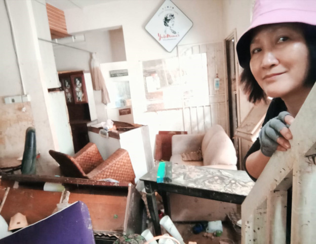 当时看到水涨上来了,她还没有意识到会这么严重,心想再等一会雨停后水就会退。可是情况却相反,当水位涨到2呎的求救临界点时,他们唯有用一些障碍物挡住,不让水涌进屋子,然后抢救楼下的东西,把东西往高处搬。
