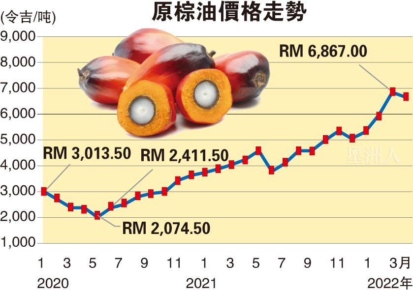 他指出,原棕油价格从2020年4至6月呈上涨趋势,原棕油价格在2020年6月的售价为每吨2411令吉50仙,并在同年11月开始超过每吨3000令吉(每吨3422令吉)。