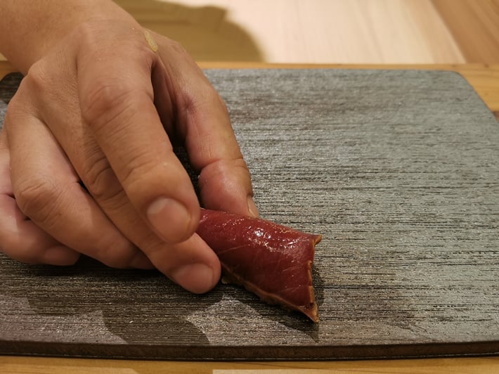 要达到刚好饱的境界并不容易。获得米其林一星的日籍寿司主厨野村裕二曾告诉我,他最大的苦恼就是担心女客没吃饱。他店里的消费模式是每人七贯2000元(约马币300元),男女食量、嘴型不同,他会在捏寿司时随时调整饭量,男客饭量多、女客饭量少,然而也不是千篇一律,如遇上小食量的男客,他也会先以对方的状态调整饭量,因此看起来都是同一款握寿司,然而从寿司师傅手中递出的,其实每一贯都不同。