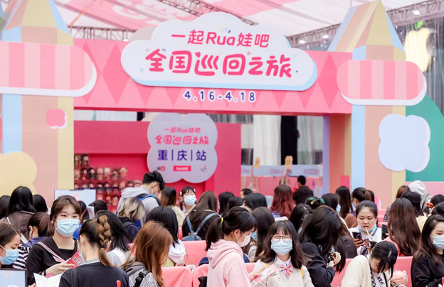 比如2021年联合棉花娃娃商家开启“一起rua娃吧”全国巡回之旅,还把创新的“棉花娃娃美容院”板块引入线下大型娃展,玩家可给娃娃装骨架、打腮红、做发型、编织草帽、拍娃片等,吸引更多人参与。