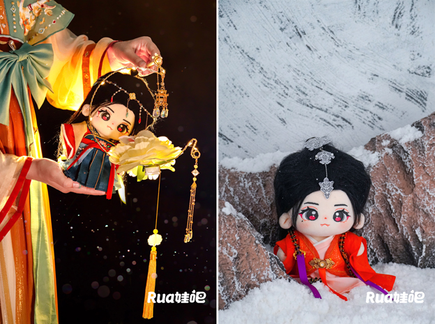 “棉花娃娃这个品类最初是在明星饭圈形成的,大部分玩家入坑棉花娃娃也是从有属性的娃娃开始,然后再慢慢喜欢其他无属性的娃娃。所以有IP或者明星光环加持的棉花娃娃,确实更受到这个圈层用户的喜爱。目前销量最好的还是以2021年热播电视剧《山河令》角色为原型的娃娃。”