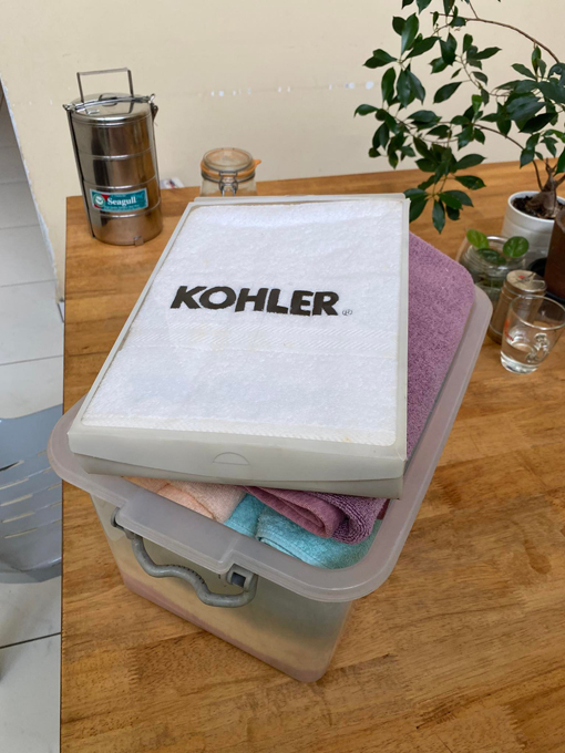 我马上在群组发了个帖子,说明自己正在寻找全新的毛巾。3天后我来到一位群组会员的家,这位善心的C先生在疫情期间批发买进毛巾送于有需要的人,疫情后家中还剩不少就送了几条给我。最环保的产品是我们没有购买的那个——我有新毛巾用,地球负担却没有增加,完美!