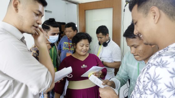 “一起说故事、拍影片!”除了让尼泊尔移工自己发声带出有别于主流社会的视角,也致力让他们掌握新的知识与技能。来到最后阶段的集体创作,周盈贞观察整个过程,觉得既有趣又辛苦。两个人可能已经有不同意见,更何况参与者共有20人,从选择题目开始都有很多不同意见和声音。所幸他们最终也能明白这部短片和平时浏览的TikTok短影音不同,大家在讨论过程中要相互妥协,最终找到平衡。