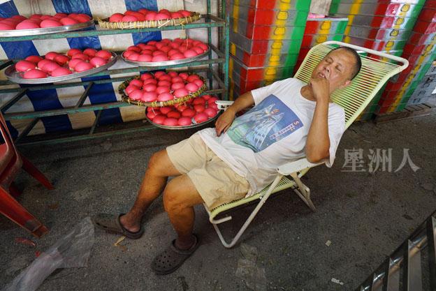 九皇爷宝诞庆典期间,因红龟包的需求量大,所以工友几乎马不停蹄地操作,务求在最短时间制成最多的包子。由于门市卖到午夜,第二天6点正又得准时开工,加上所有机器工具都在档口,总得有人看守,所以胡政杰索性就在档口过夜,收工后把折叠起的“懒人椅”摊开,就迅速入眠。